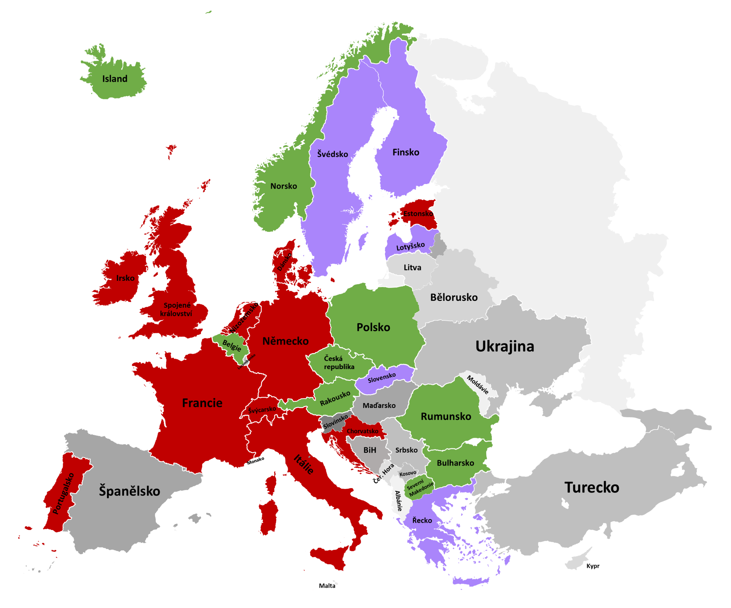 Jak vypadá situace v Evropě celkově? Následující mapa shrnuje současný stav. Klikněte pro zvětšení.