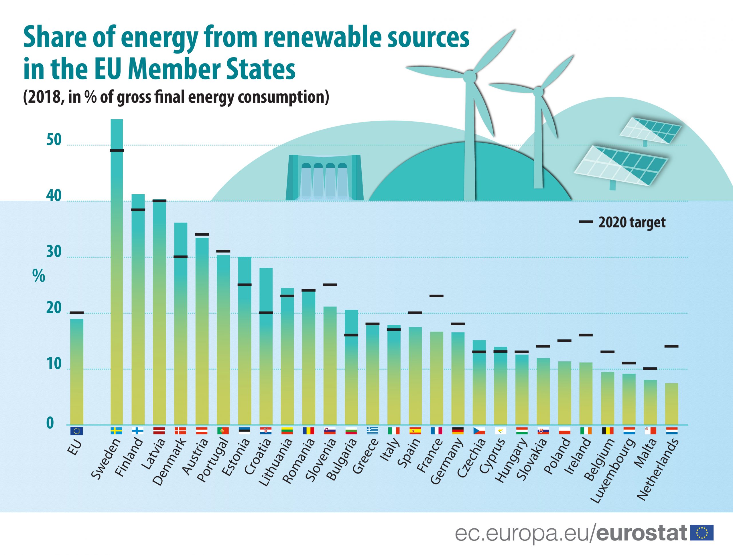 Dokument Komise uvádí, že zejména v otázce přechodu k obnovitelným zdrojům energie (OZE) je Česká republika dlouhodobě pod průměrem EU. Zatímco v roce 2018 byl evropský průměr podílu obnovitelných zdrojů na celkové energetické spotřebě necelých 19 %, v Česku se jednalo pouze o 15 %. Již před dvěma lety uváděla Komora obnovitelných zdrojů energie, že k tomu, aby byl v roce 2030 podíl OZE na spotřebě energie v EU 32 %, musí český podíl stoupnout alespoň na 22,5 %.Celkově je na tom v rámci Unie nejlépe Švédsko, kde podle Eurostatu v roce 2018 podíl energie získávané z obnovitelných zdrojů dosahoval 54,6 %. Podobně je na tom například i Finsko (41,2 %), Lotyšsko (40,3 %) nebo Dánsko (36,1 %). Naopak nejhůře je na tom Nizozemsko, kde OZE tvoří pouze 7,4 %, v těsném závěsu s Maltou (8 %) nebo Lucemburskem (9,1 %). ČR se tak nachází ve spodní třetině evropské sedmadvacítky a je na tom podobně jako Německo (16,5 %), Maďarsko (12,5 %) nebo Slovensko (11,9 %).Česko je zároveň po Německu a Polsku největším producentem uhlí v EU. Přibližně 40 % veškeré energie v ČR pochází právě z uhelných elektráren, v Německu se jedná o 45 % a Polsku 55%. Rozdíl je ale v tom, že zatímco v Německu bylo stanoveno datum ukončení výrobu energie z uhlí na rok 2038, v ČR takové datum stále chybí. V tomto ohledu je na tom hůře tedy pouze Polsko, které se na rozdíl od Česka zatím nepřipojilo ani k závazku bezuhlíkové Evropy do roku 2050. Nyní ale i Poláci signalizují, že považují zelené investice za cestu k ekonomické obnově.