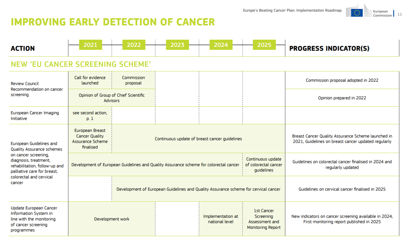 Harmonogram plánů EU v oblasti včasné detekce rakoviny © European Union