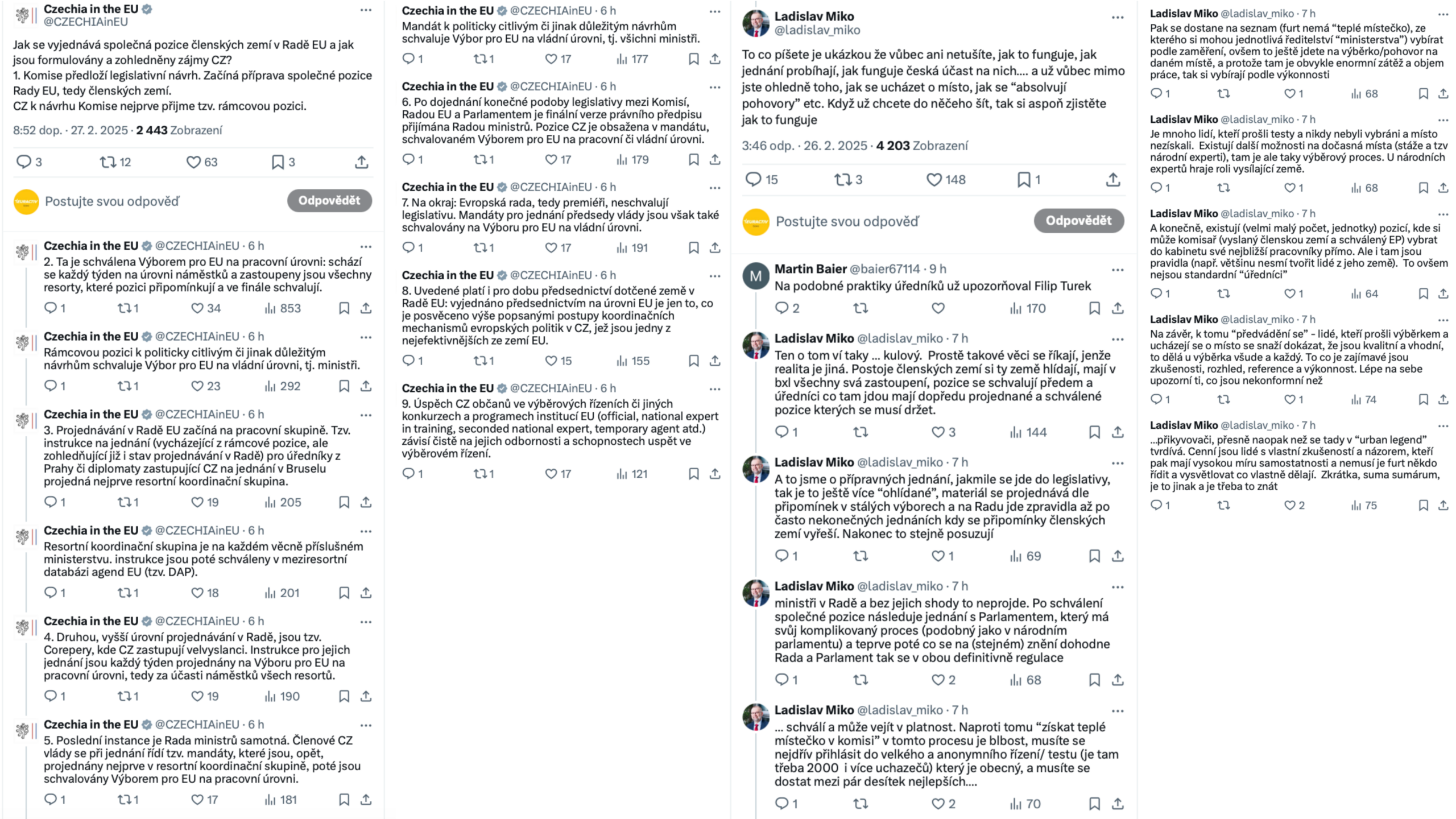 Zdroj: Síť X, profily Lukáše Kovandy, Stálého zastoupení ČR v EU a Ladislava Mika