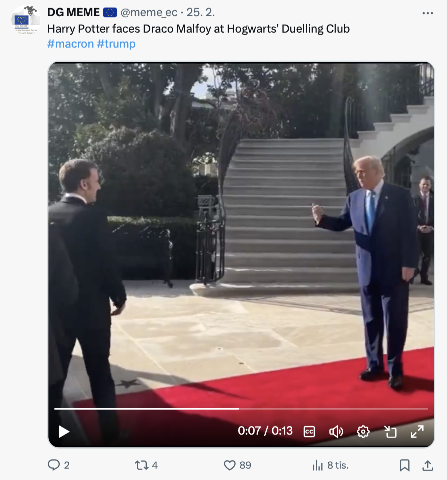 Styl, jakým americký prezident Donald Trump třese svým kolegům pravicí, je pověstný už z dob jeho prvního mandátu. Tentokrát ale zažívá čerstvý závan pozornosti poté, co Trumpa navštívil francouzský prezident Emmanuel Macron a média zaujalo, jak dlouho jim uvítací stisk vydržel a jak se „otlapkávali“ při mediálním brífinku. Možná ale ve stínu těchto virálních momentů zapadlo, že si střihli také duel jako z Harryho Pottera. Jste team Draco nebo Harry?
