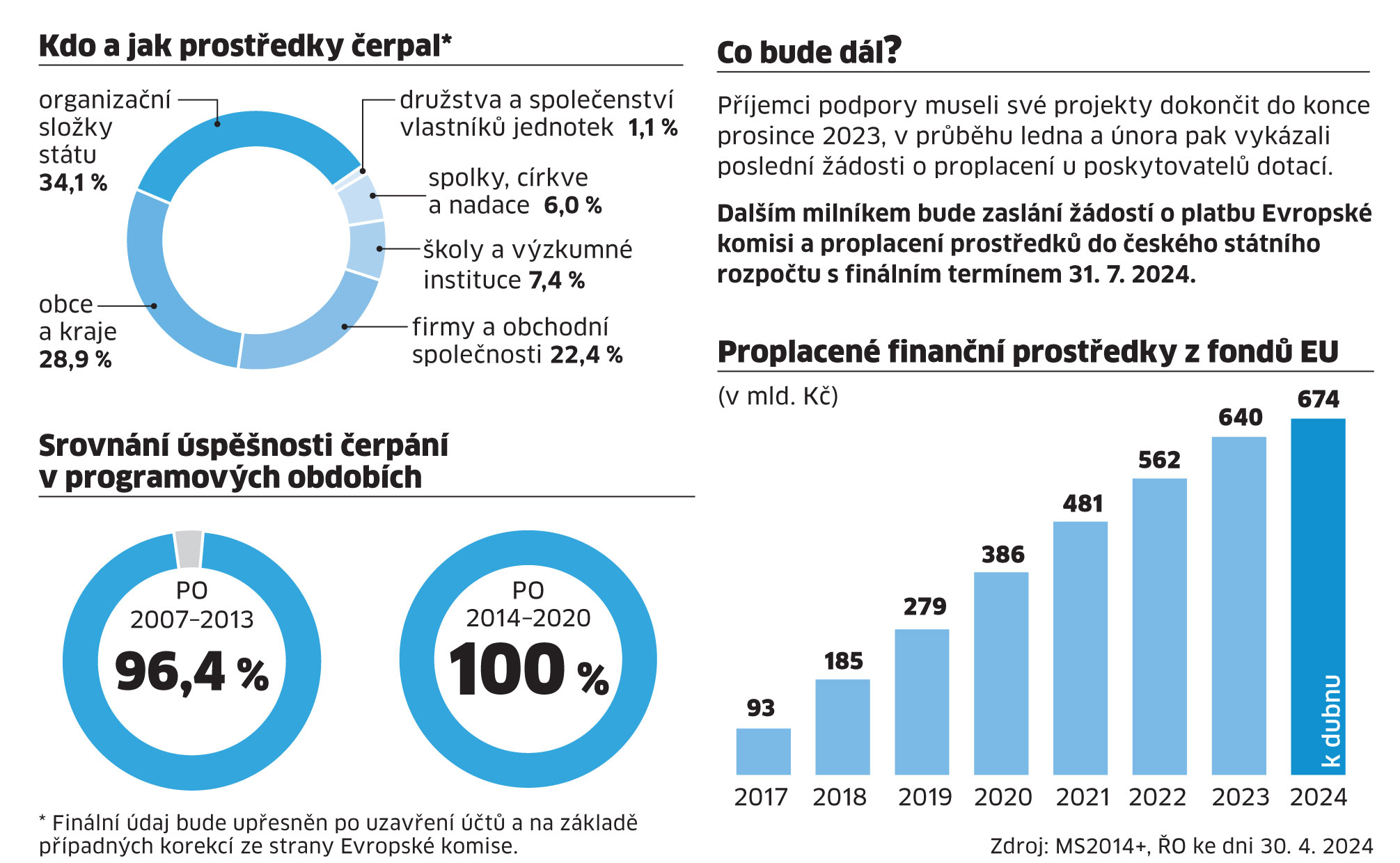 V posledních letech se Česku velmi daří uplatnit peníze z evropských kohezních fondů, které dlouhodobě pomáhají snižovat rozdíly napříč regiony i celou Evropskou unií. Velký úspěch země aktuálně zaznamenává v dočerpání všech prostředků minulého období 2014–2020, stejně dobře se jí ale daří i start toho nového. Ke konci letošního dubna 2024 bylo českým příjemcům vyplaceno přes 674 miliard korun, lze tedy aktuálně očekávat dočerpání 100 procent finančních prostředků vyčleněných pro programové období 2014–2020.* Tento úspěch vypovídá především o vysoké schopnosti českých příjemců efektivně vynaložit prostředky na projekty prospěšné pro občany. Neméně důležitá je také rychlá a precizní administrace kroků spojených s přípravou žádostí o platbu, a to jak na straně příjemců, tak na straně poskytovatelů dotací.Článek byl publikován ve speciální příloze HN Proměny Česka.Česko je v čerpání evropských fondů na špici