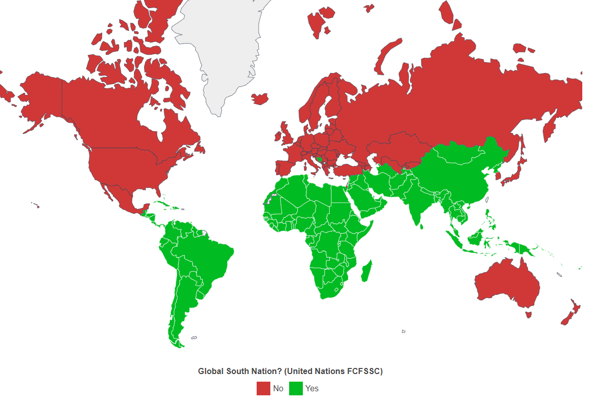 © Pixabay|Globální Jih (zeleně) © World Population Review