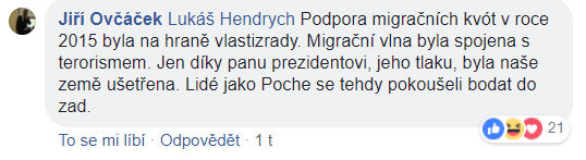 Jiří Ovčáček – jak je jeho zvykem a rovněž náplní práce – mnohdy až srdceryvně brání názory svého šéfa. Nejinak tomu bylo i v případě nesouhlasu Miloše Zemana s návrhem ČSSD nominovat do budoucí vlády českého europoslance Miroslava Pocheho. Důvodem je prý mimo jiné jeho podpora „migračních kvót“.