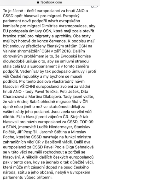 Podle redakce Parlamentních listů (a podobných hysterických reakcí na sociálních sítích, jako je ta výše uvedená) nám tedy OSN plánuje vnutit otevření hranic a Evropský parlament tomu svým hlasováním z 18. dubna 2018 vyjádřil podporu. Skvěle. Pravda je ale opět trošku někde jinde.