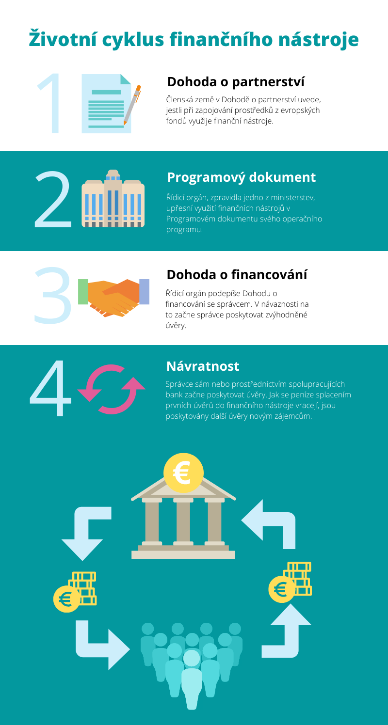 Říká se, že všechno má svůj konec. Ne však finanční nástroje. Možná nevyřeší všechny problémy evropské ekonomiky, ale na rozdíl od dotací představují návratnou formu pomoci, a tak každé euro do nich vložené udělá službu hned několikrát. A ani potom se peníze ve finančním nástroji nepřestanou točit. Jsou vlastně takové finanční perpetuum mobile.Autor článku je zaměstnancem Ministerstva financí. Když je klientovi schválen úvěr, ani si nemusí všimnout, že je spolufinancován z evropských fondů. Vše se totiž odehraje v jeho bance, u stolu s jeho bankéřem a stejně jako v případě jakékoliv jiné půjčky, i tato projde standardním vyhodnocením rizika a bonity klienta. Jen se nejedná o peníze banky, ale Evropské unie. Podpora z evropských fondů totiž může mít mnoho podob, například právě zvýhodněného úvěru.