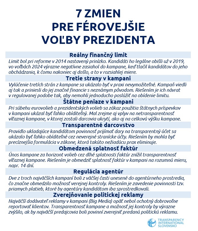 Transparency International Slovensko nabízí sedm změn, díky kterým by budoucí prezidentské volby v této s Českem sousedící zemi mohly být daleko transparentnější a férovější.