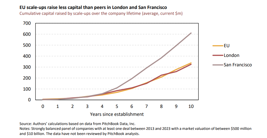 Evropský problém leží v tom, že má k dispozici mnohem nižší objem tzv. rizikového (venture) kapitálu. V letech 2018–2023 získaly evropské podniky v oblasti umělé inteligence investice okolo 32,5 miliardy euro, zatímco americké přes 120 miliard.​ „Evropským inovátorům tak často chybí finanční palivo pro rychlou expanzi, což je nutí hledat zdroje jinde. V minulosti to vedlo i k ,útěku mozků‘ a přesunům start-upů do USA kvůli financování – z 147 evropských jednorožců posledního desetiletí jich 40 přesunulo centrálu do zahraničí, většinu do USA, právě kvůli lepšímu přístupu ke kapitálu,“ popsal Navrátil. Mezi takové firmy patří i původně švédská platforma na streamování hudby Spotify.