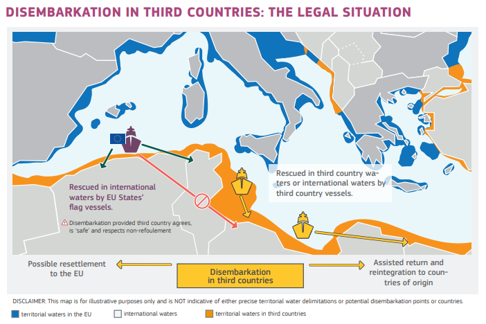 Téma řízení a koordinace unijních námořních akcí je pro jižní státy Unie prioritní. Na posledním červnovém summitu Evropské rady se hlavy států unijních zemí dohodly na konceptu vytvoření platforem pro vylodění zachráněných migrantů, který prosazovalo i Česko. Evropská komise představila 24. července neoficiální dokumenty o regionálních opatřeních pro vylodění a o kontrolovaných střediscích v EU. Vyloďovací platformy by měly být vytvořeny mimo Evropu, kontrolovaná střediska obdobná hotspotům by měla fungovat na území unijních států, které budou ochotny je vybudovat.Unie plánuje rozdělovat uprchlíky a migranty na africkém území, ještě před vstupem do EvropyV nových vyloďovacích centrech mají být migranti prověřováni a rozděleni podle toho, zda mají nárok na azyl, či nikoliv a migrují do Evropy pouze z ekonomických důvodů. Všem příchozím budou registrovány biometrické údaje, tedy fotografie a otisky prstů. Libye takový přístup neakceptuje, a žádá Unii, aby řešila situaci přímo v zemích původu, ze kterých migranti do Libye přicházejí s cílem vydat se na cestu do Evropy. Niger se ke konceptu staví skepticky a upozorňuje na nízké počty přesídlených osob z Afriky do Evropy.