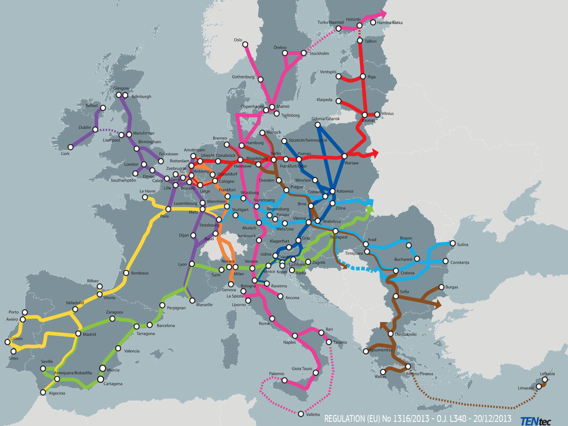 Mapa transevropské dopravní sítě TEN-T. Zdroj: European Union