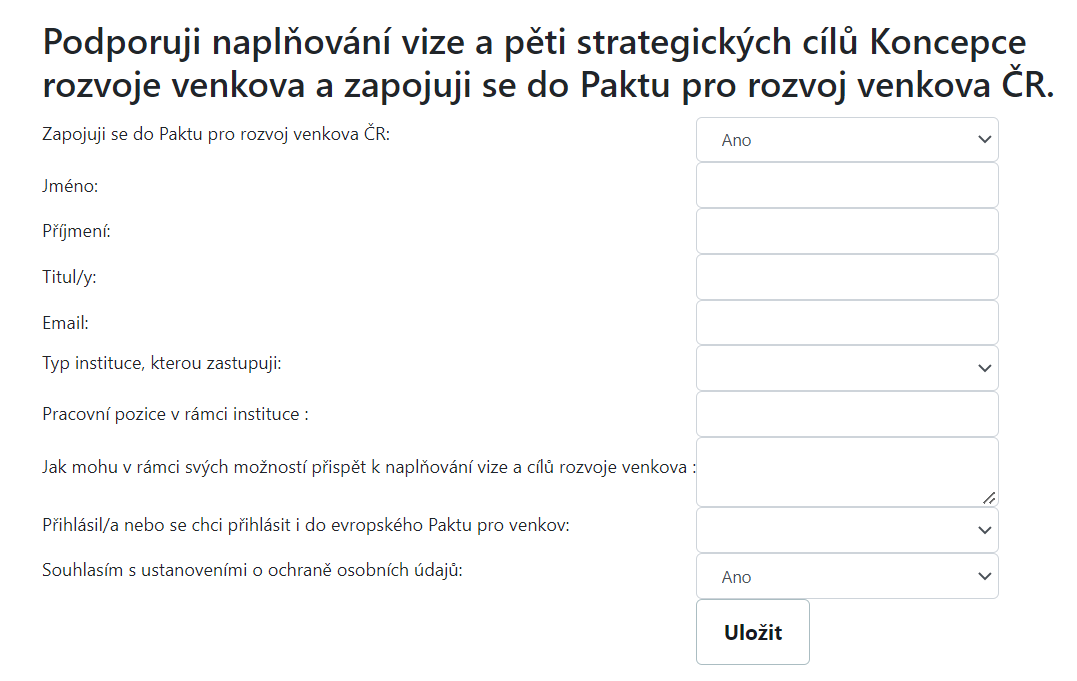 Formulář z webu Ministerstva pro místní rozvoj ČR