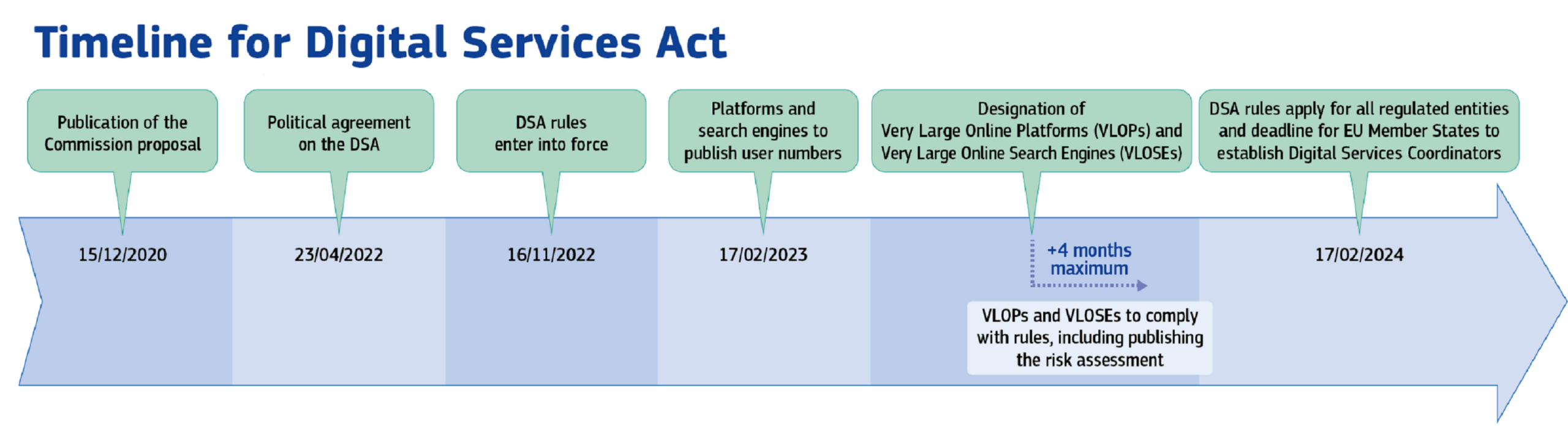 Harmonogram nástupu DSA v platnost. Zdroj: Evropská komise